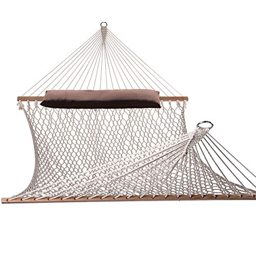 Lazy Daze Hammocks Cotton Rope Double Hammock with Pillow, Wood Spreader, Chains and Hooks, for Two Person, 450 Pounds Capacity, Natural