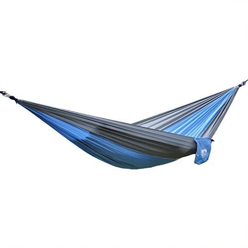 OuterEQ Portable Parachute Nylon Fabric Travel Camping Hammock Grey/light blue