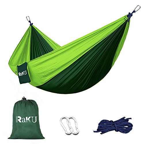 Raku Camping Hammock, 660lb Portable Lightweight Parachute Nylon Fabric Hammock for Outdoor, Hiking, Camping, Backpacking, Travel, Backyard, Beach,1 YEAR WARRANTY