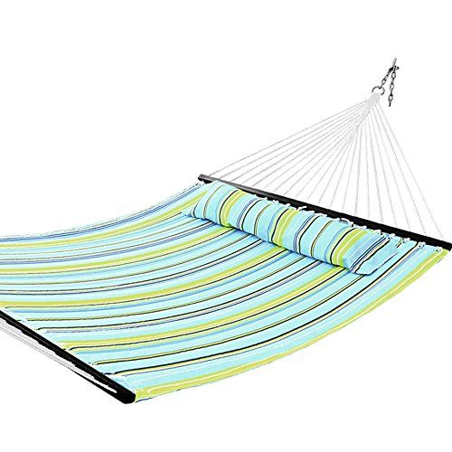 Sportneer Double Hammock Quilted Fabric Double Wide Solid Spreader Bar for Outdoor Patio Yard