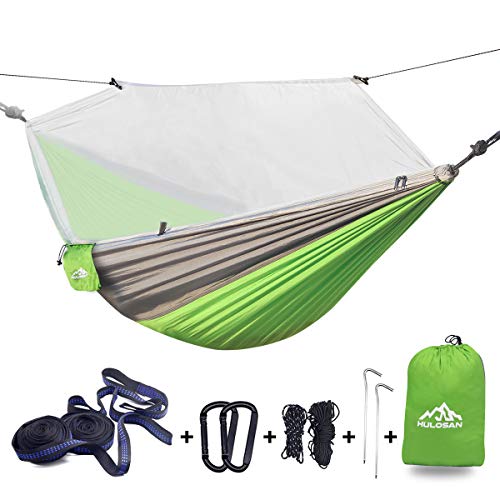 HULOSAN Camping Hammock with Net,Lightweight Hammock Tree Straps and Carabiners,Easy Assembly, Portable Parachute Nylon Hammock for Camping,Backpacking,Travel,Beach,Backyard,Patio,Hiking