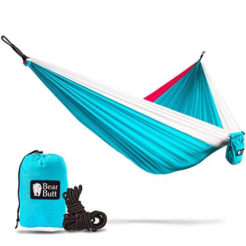 Bear Butt Double Parachute Camping Hammock, Sky Blue / Pink / White