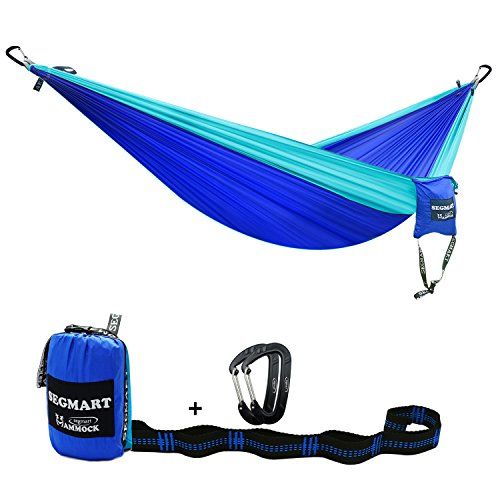 SEGMART Camping Hammock- Easy Hanging Double Hammock with Tree Straps&Carabiners,Blue/Sky blue, 600lbs