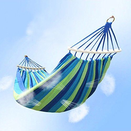 Double Wide Hammock Cotton Soft Woven Bed for Supreme Comfort Fabric Travel Camping Hammock 2 Person for Backyard, Porch, Outdoor or Indoor Use (with stick Green & Blue Stripes(7560))