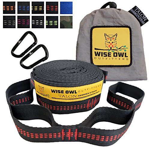 Wise Owl Outfitters Talon Hammock Straps – Combined 20 Ft Long, 38 Loops W/ 2 Carabiners – Easily Adjustable, Tree Friendly Must Have Gear For Camping Hammocks Like Eno Red Stitching