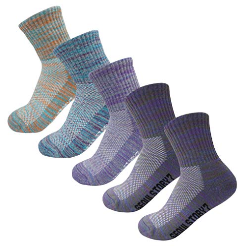 SEOULSTORY7 5Pack Women’s Mid Cushion Low Cut Hiking/Camping/Performance Socks Light Purple/Khaki/Blue/Purple/Purple Small