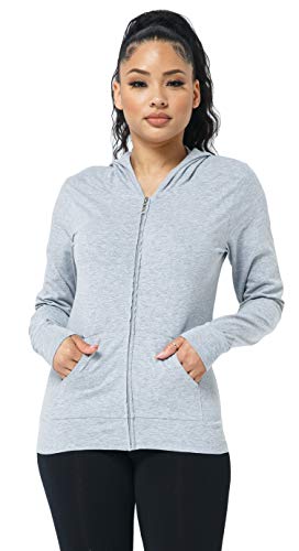 YourStyle USA Women’s Hoodie Jacket – Casual Full Zip Up Lightweight Long Sleeve Basic Workout Active Hooded Top with Pockets SJ4001 HGrey L