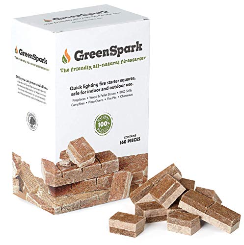 GreenSpark Fire Starter 160 Squares, All-Natural, Fireplace, Campfire, Fire Pit, Grill, BBQ Smoker, Wood & Pellet Stove, Indoor & Outdoor, All-Weather, Super Fast Lighting