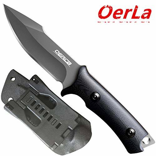 Oerla TAC OLF-1009 Fixed Blade Outdoor Duty Knife 420HC Stainless Steel Field Knife Camping Knife with G10 Handle Waist Clip EDC Kydex Sheath (Black)