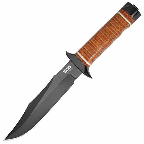 SOG Fixed Blade Knives with Sheath – “Bowie 2.0” S1T-L Bowie Knife Tactical Knife Survival Knife w/ 6.4” Hunting Knife Blade + Leather Knife Sheath