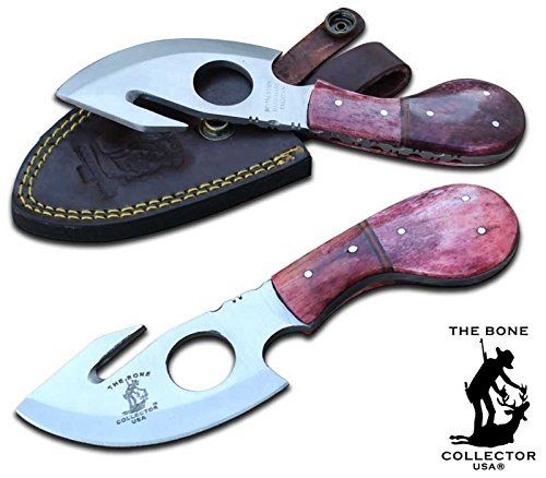 New Bone Collector BC 794 3 Colors Fixed Blade Skinning Knife with Leather Sheath 7 Inch Overall Red Yellow Blue Full Tang Saw Tooth Blade (Red Bone)