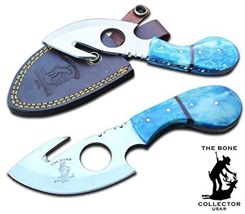 New Bone Collector BC 794 3 Colors Fixed Blade Skinning Knife with Leather Sheath 7 Inch Overall Red Yellow Blue Full Tang Saw Tooth Blade (Blue Bone)