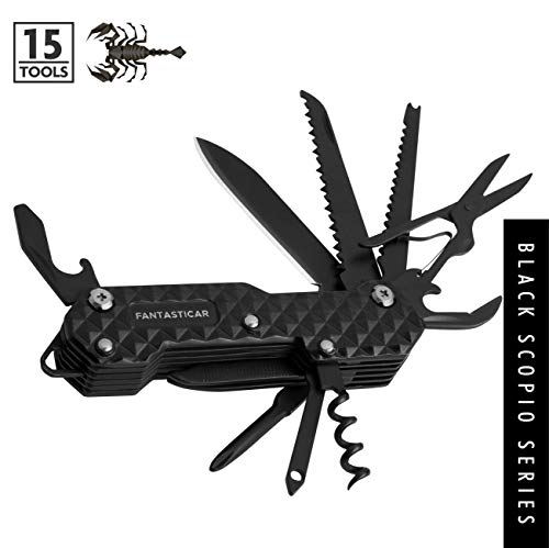 FANTASTICAR 15 in 1 Army Multi-Tool, Key Chain, Folding Pocket Knife With Premium Gift Box for Camping, Fishing, Hunting, Survival, Heavy Duty Outdoor (Black)