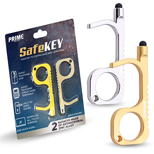 SafeKEY Door Opener Tool – No Touch Keychain Tool with a Built-in Stylus and Bottle Opener – 2 Piece Set (Gold and Silver) – This Touchless Key Tool is the Perfect Solution to Stay Contact-Free