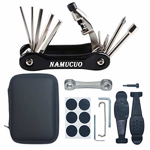 NAMUCUO Bike Repair Kit-Bicycle Tool kit with 10 in 1 Multi-Function Bike Tool(Equipped with Chain Tool), Multi-Purpose Bone Wrench and Related Spare Tools, Portable Tool Bag, 6 Month Warranty