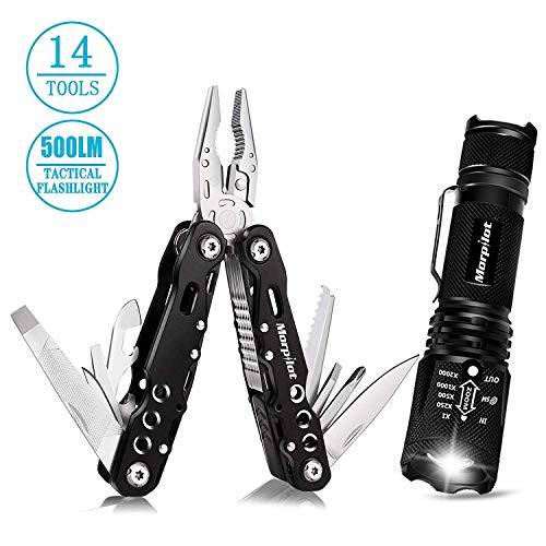 Morpilot Multitool Plier & Tactical Flashlight Set, 14 in 1 Portable Folding Pocket Knife and 5 Light Modes Handheld LED Flashlight for Survival, Camping, Hiking, Hunting, Fishing