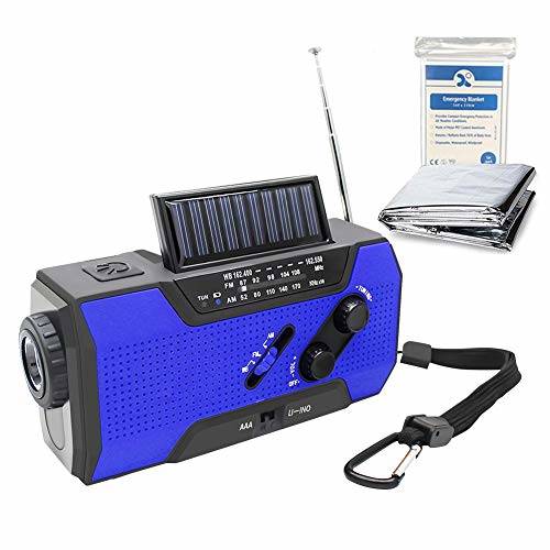 Hand Crank Solar AM FM NOAA Weather Radio 2000mAh Portable Power Bank Emergency Radio Dynamo Flashlight, Reading Lamp and SOS Alarm 4 Ways to Charge (Blue)