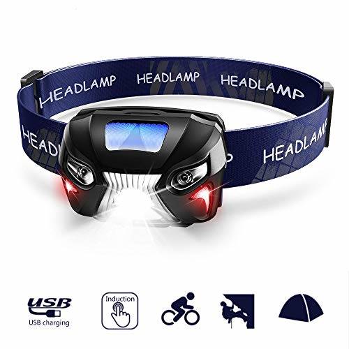 Rechargeable Sensor Headlamp,Ultra Bright 600 Lumens White Cree LED Head Lamp Flashlight with Redlight and Motion Sensor Switch,Great For Running, Camping, Hiking,Waterproof,Lightweight