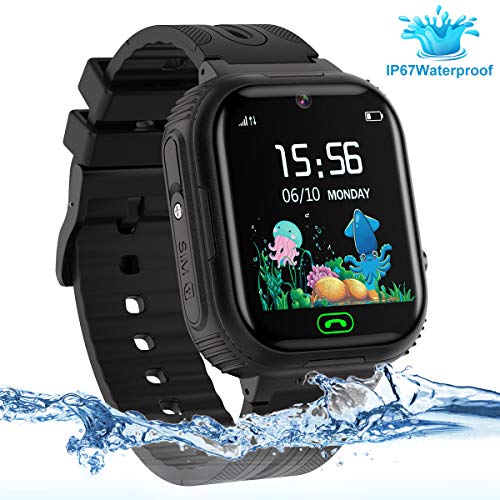 Kids Smart Watch Phone, LBS/GPS Tracker Waterproof Smartwatch for Boys Girls Children SOS Touch Screen Camera Two-Way Call for 3-12 Years Old (Black)