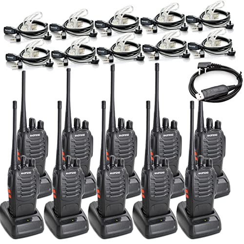 BAOFENG BF-888S Two Way Radio Long Range 16 CH Baofeng Radio and Tenway Covert Air Acoustic Tube Earpiece (Pack of 10)