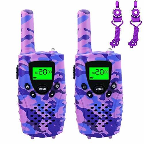 FAYOGOO Kids Walkie Talkies, 22-Channel FRS/GMRS Radio, 4-Mile Range Two Way Radios with Flashlight and LCD Screen. 2 Pack (Camo Purple)