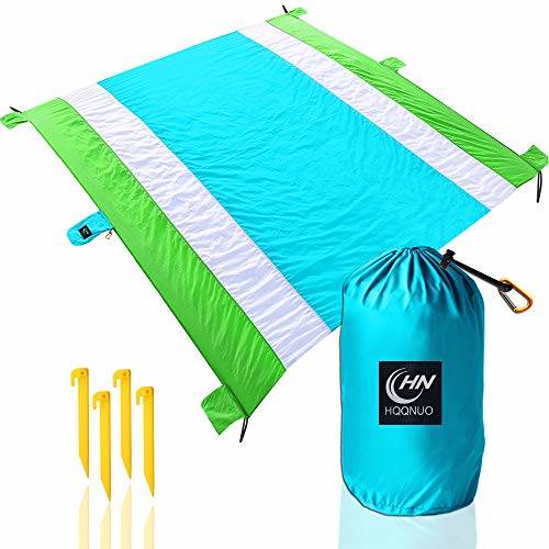 MIU COLOR Outdoor Beach Blanket Sand Proof Waterproof Oversized 80” x 71” Sand Weighted Corner with Piling Hole Foldable Pocket Blanket Compact Lightweight for Family Travel Picnic Camping