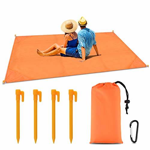 BROTOU Compact Beach Pocket Blanket for Outdoor Camping,Hiking,Travel,Festival, Sports Sand Proof Picnic Mat Waterproof Ground Cover Tarp(Size 79”x55”) (Orange)