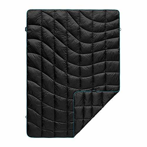 Rumpl The Down Blanket | Outdoor Down Camping Blanket for Traveling, Picnics, Beach Trips, Concerts | Black/Cyan, 2-Person