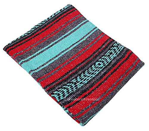 El Paso Designs Mexican Yoga Blanket Colorful 47in x 68in Yoga Studio Mexican Falsa Blanket Ideal for Yoga, Camping, Picnic, Beach Blanket, Bedding, Home Decor Soft Woven Serape (Red, Mint and Gray)