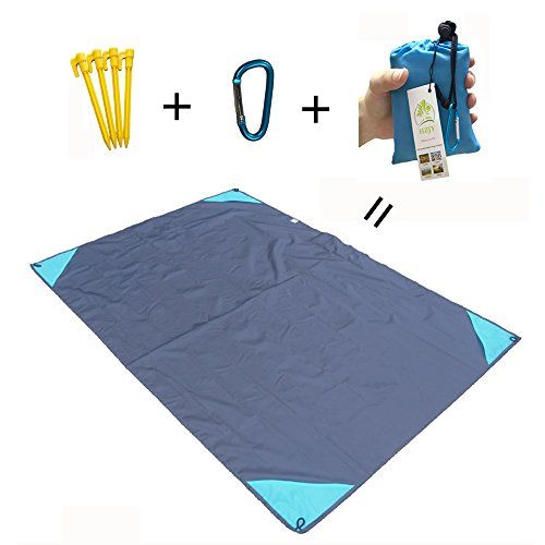 Outdoor Picnic Blanket (71″ x 55″) -Compact, Lightweight, Waterproof, Sand Proof Pocket Blanket Perfect for the Beach, Hiking, Travel, Camping, with Pockets, Loops, Stakes, Carabiner (blue)