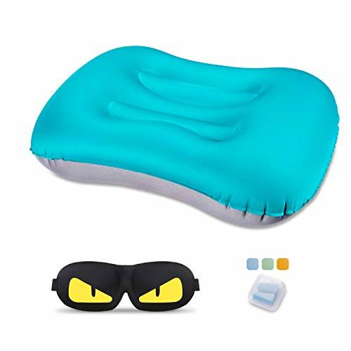 Free-Time Co. Inflatable Camping Pillow Set – Sleeping Face Mask Included – Compact Backpacking Pillow Ultralight for Travel and Hiking | by