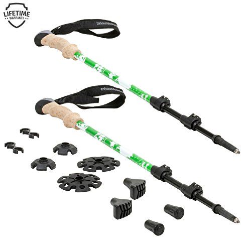 TNH Outdoors Trekking Poles – Collapsible, Lightweight, Aluminum Hiking, Walking & Running Sticks with Natural Cork Grips, Quick Locks, 4 Season/All Terrain Accessories and Carry Bag