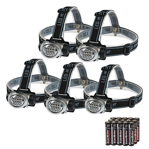 EverBrite 5-Pack LED Headlamp Flashlight for Running, Camping, Reading, Fishing, Hunting, Walking, Jogging, Durable Light Weight Head Lights Batteries Included