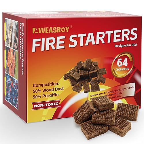 • GREAT VALUE – One pack of firestarter has 64 squares and is the universal choice as grill starter for BBQ, indoor fireplace, and outdoor camping. Just 1 or 2 fire starters to get your fire immediately. The fire starter for wood stove is compact & lightweight to place into your backpack with the portable size of camp fire starters, to light a campfire for camping and hunting trips.
